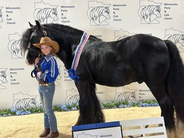 RNG Kate's Back in Black Jett is a son of the one and only GG Kiss Me Kate and by SD Hercules. He is the best gelding and an invaluable part of our farm! Jett has been working with my son Pavlo, who is autistic, and this year he started showing with Niah R. a 10 year old girl who is a great ambassador to the GVHS Youth!